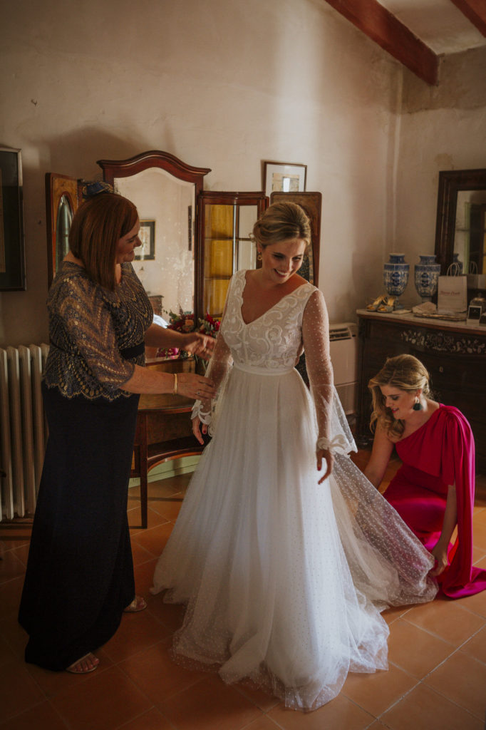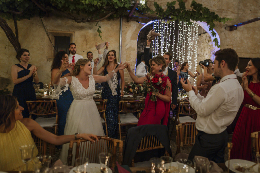 The rural, summery, mediterranean atmosphere completely impregnated such a magic place that is Es Fangar, located in Campanet, Mallorca. The fun, love, the amazing dress of Company Novias that the bride was wearing and the beautiful decoration performed by “the wedding social club” made the evening even more idyllic.
