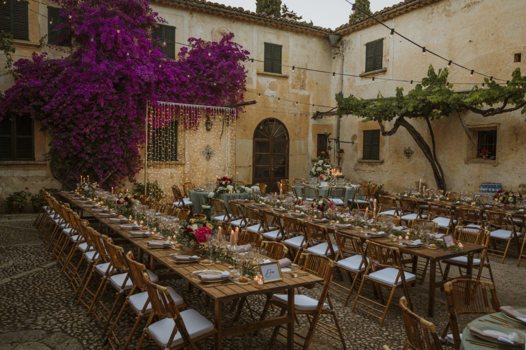 El ambiente rural, mediterráneo, veraniego impregnó por completo un sitio mágico como es Es Fangar, ubicado en Campanet, Mallorca. La diversión, el amor, el espectacular vestido de Company Novias que llevaba puesto la novia y la preciosa decoración realizada por “the wedding social club” hicieron todavía más idílica la velada.