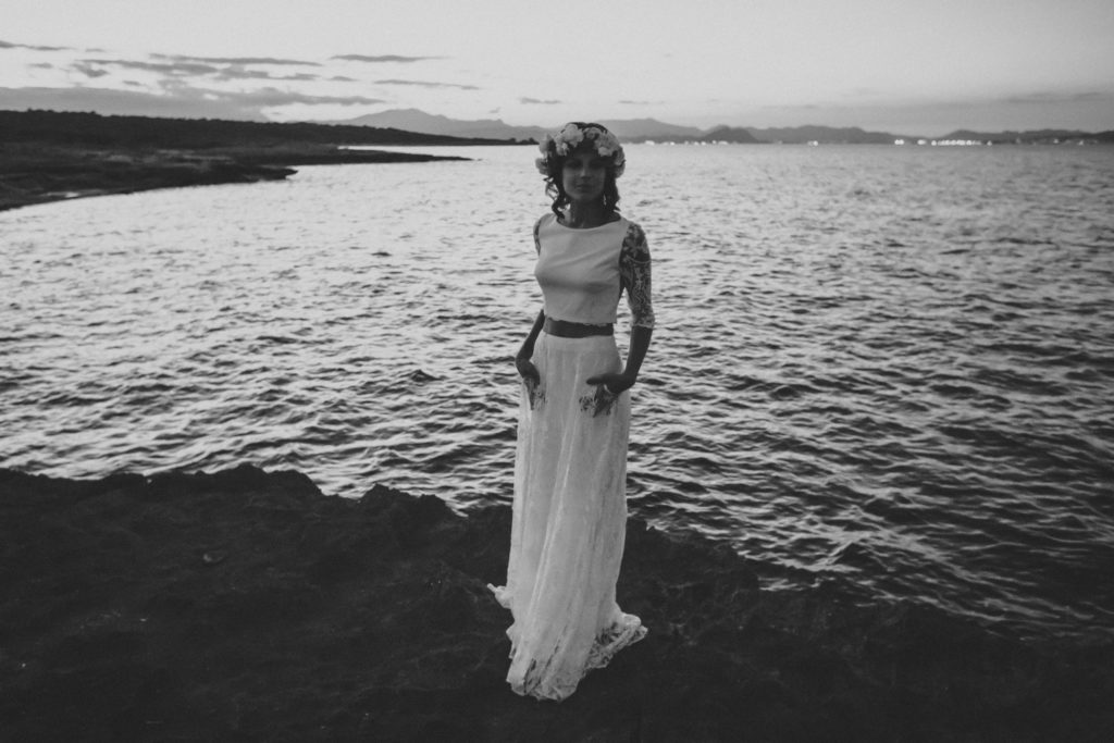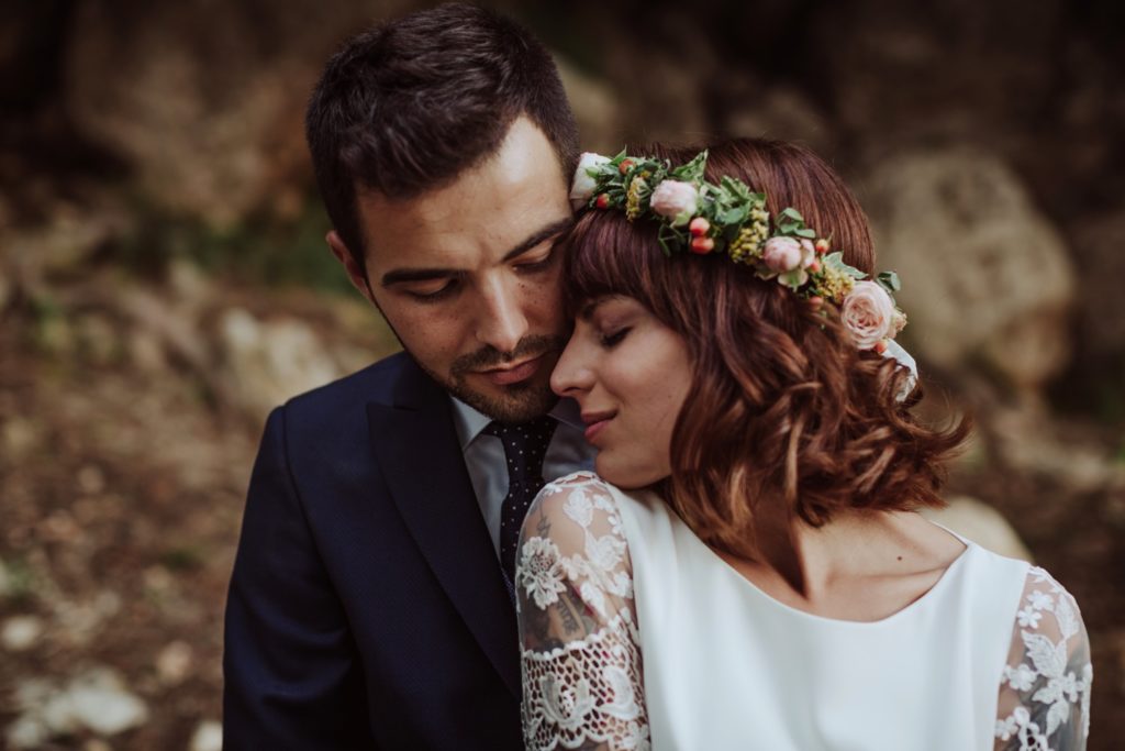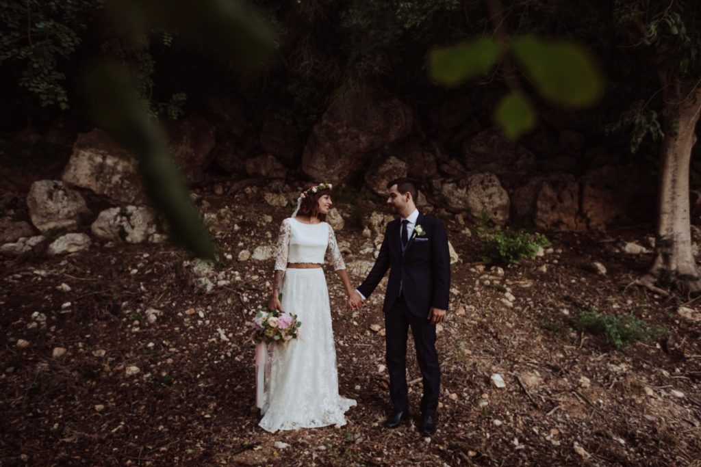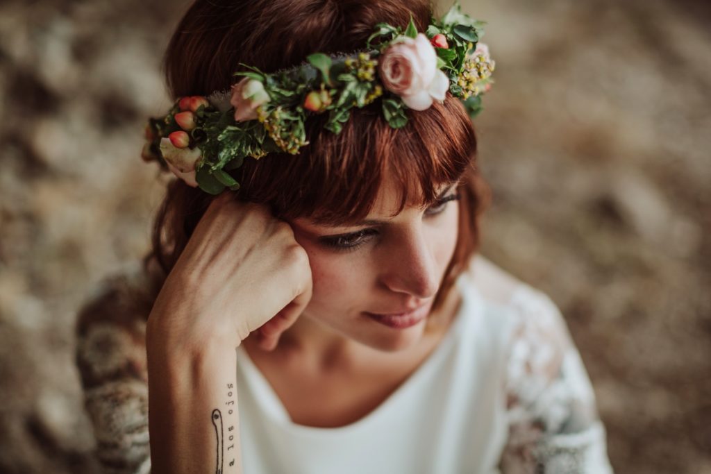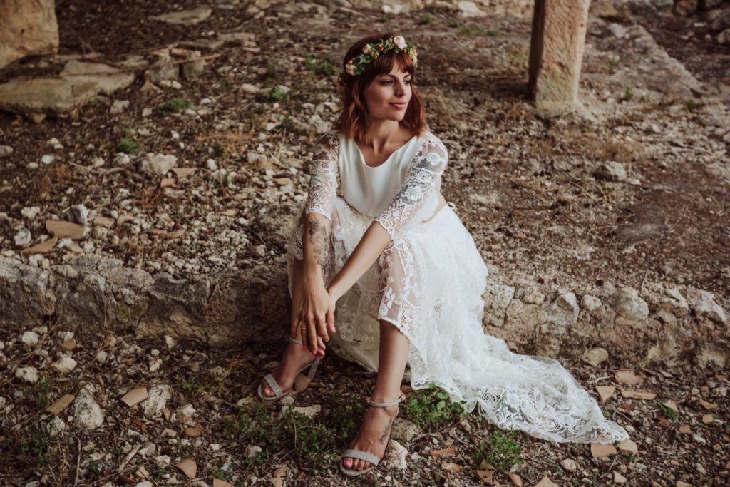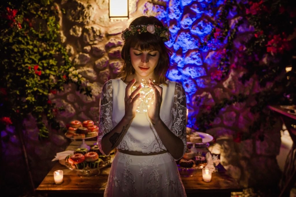 Neus is a beautiful young woman who left us speechless with her two-pieces dress by Company, plus a bouquet and floral crown of Francis Garcia for Mille Papillons. The flowers in peach tones softened the boho style giving it a sweet and romantic touch.