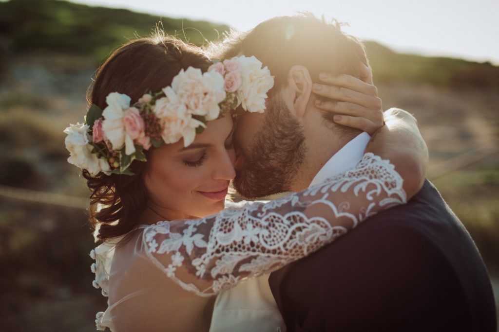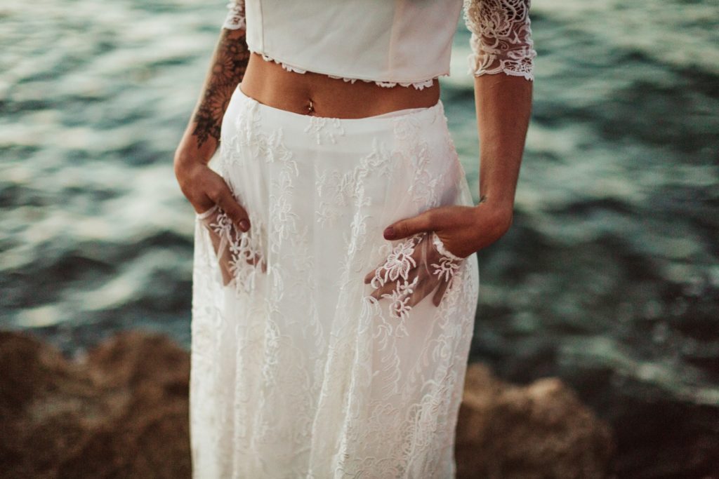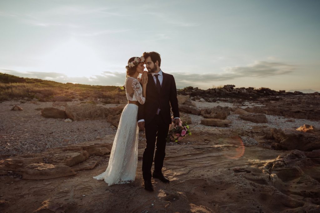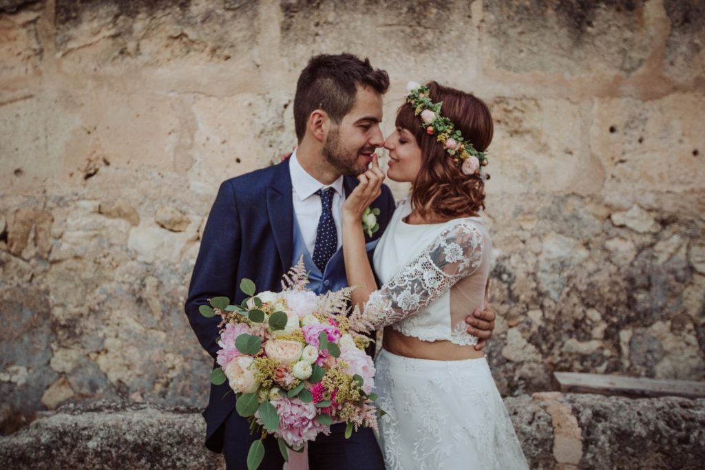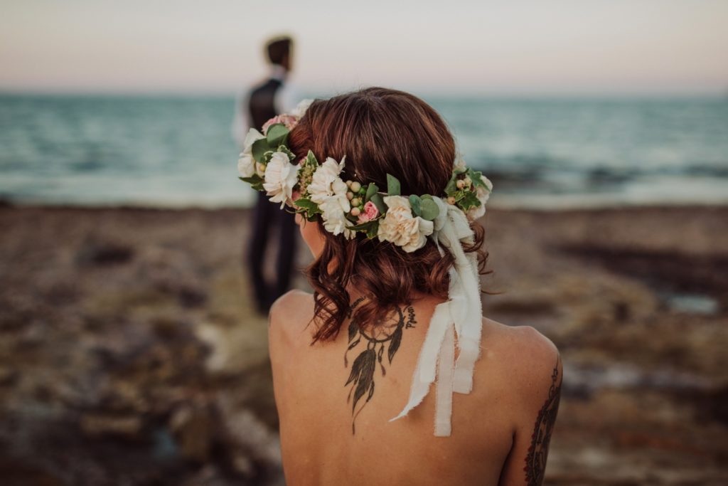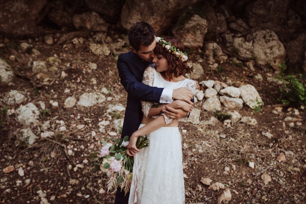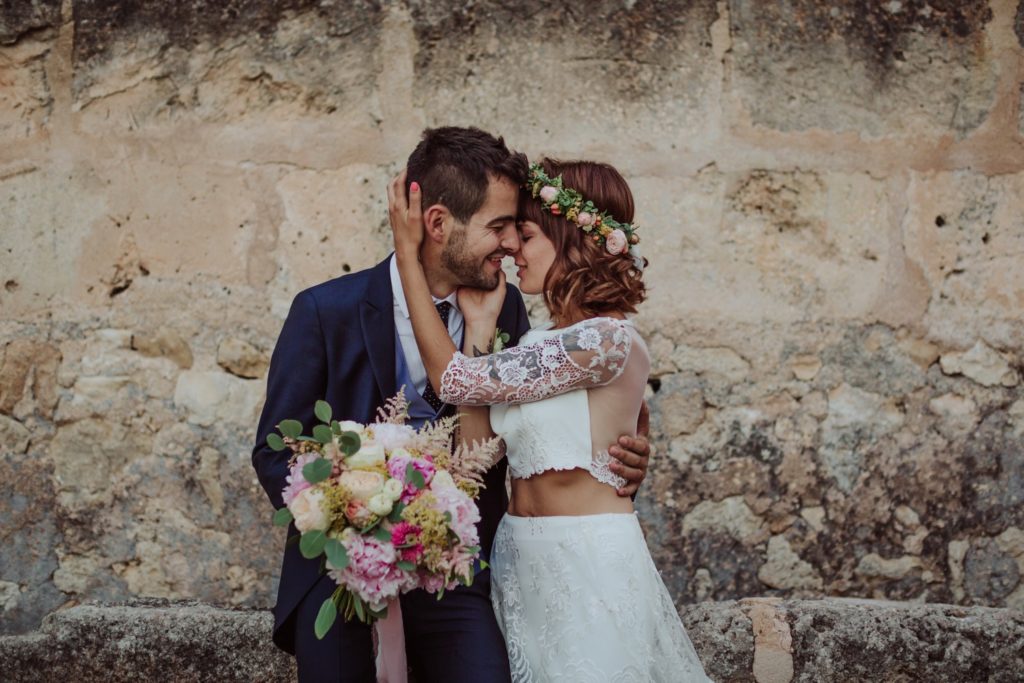 Neus is a beautiful young woman who left us speechless with her two-pieces dress by Company, plus a bouquet and floral crown of Francis Garcia for Mille Papillons. The flowers in peach tones softened the boho style giving it a sweet and romantic touch.
