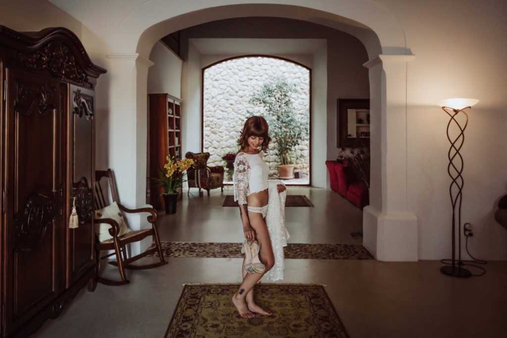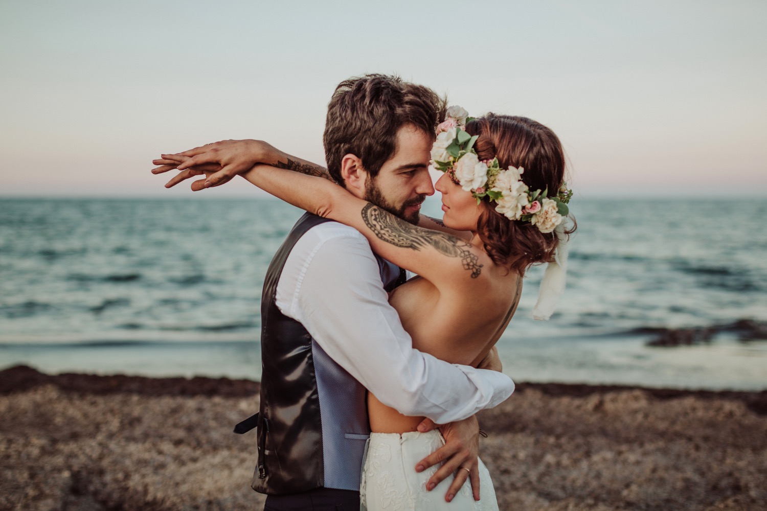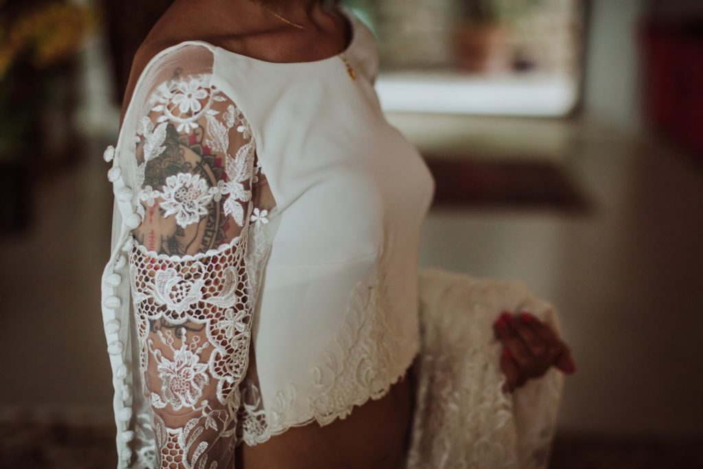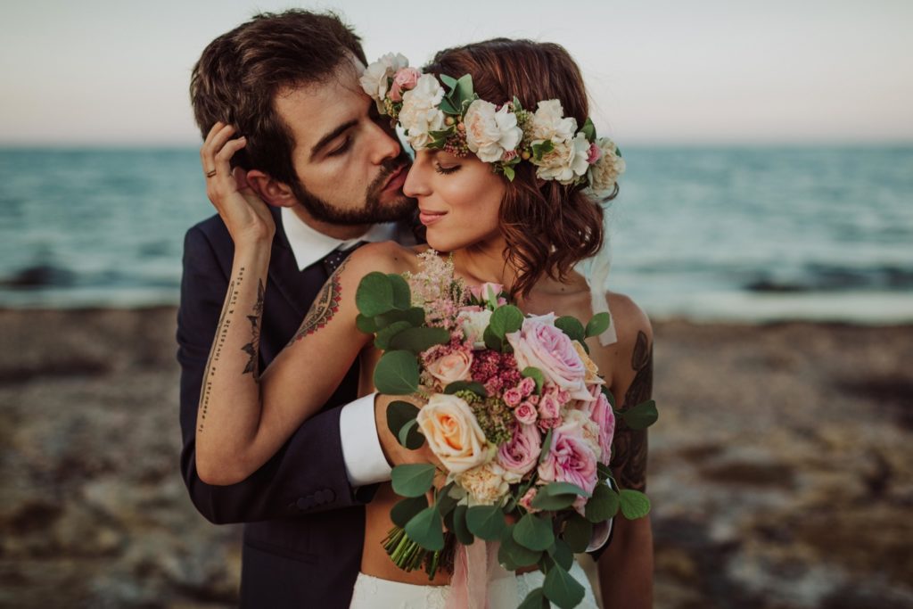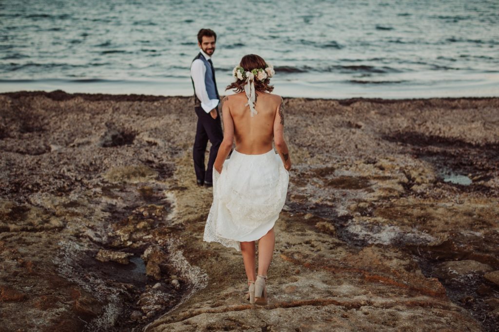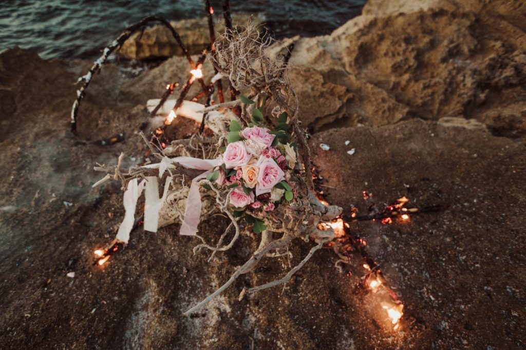 Neus is a beautiful young woman who left us speechless with her two-pieces dress by Company, plus a bouquet and floral crown of Francis Garcia for Mille Papillons. The flowers in peach tones softened the boho style giving it a sweet and romantic touch.