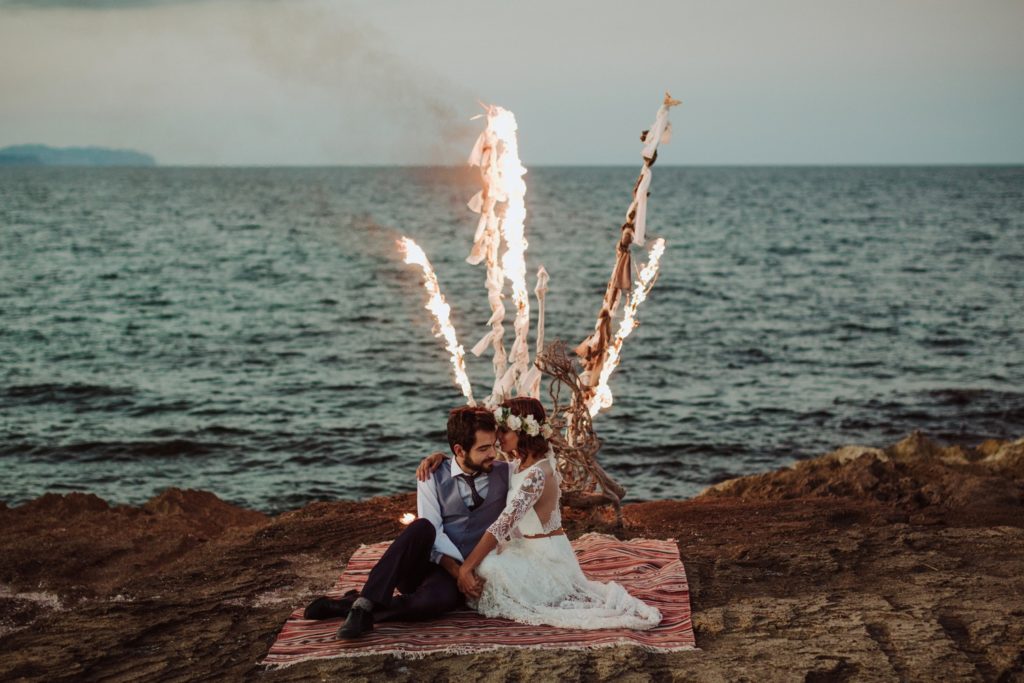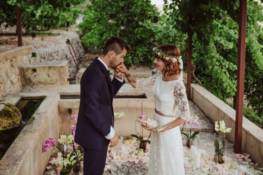 The wedding took place in the east side of Mallorca. A beautiful wedding held in their family home. A magnificent Mediterranean-style house with countryside views and where Mille Papillons team created a romantic atmosphere with lovely boho touches.