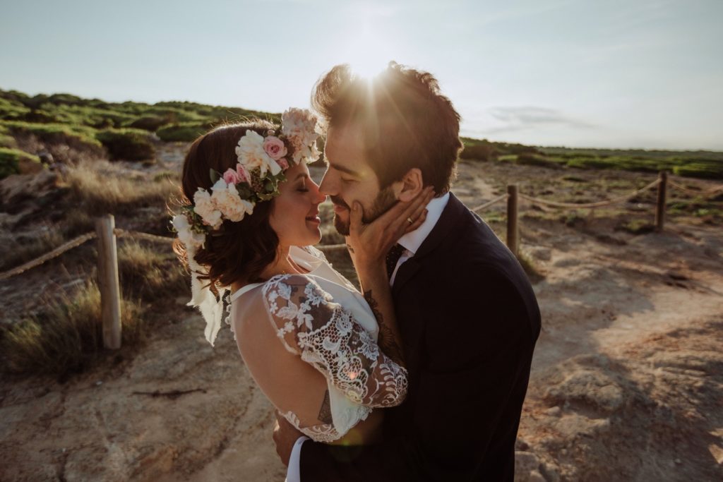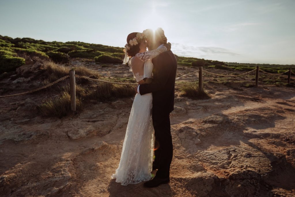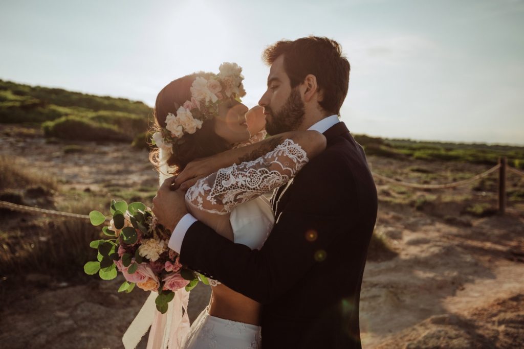 La boda tuvo lugar en la zona de levante de Mallorca. Una preciosa boda celebrada en la casa familiar. Una preciosa casa de estilo mediterráneo con vistas al campo y donde el equipo de Mille Papillons creo una esfera romántica con toques boho preciosa