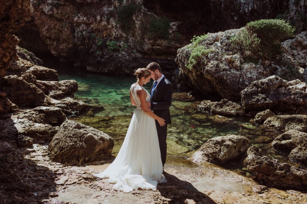 This time we moore in the magical and intimate island that is Menorca to perform Marian and Iñaki’s post-wedding, and this beautiful couple completely enveloped us with love and happiness. The scenery amazed us, from the private house where the wedding took place in Mallorca, to the spectacular woods and little beaches of Menorca, as well as the village of Binibeca, which transported us several centuries back in time. No better combination ocurr to us than this gorgeous couple and the amazing landscapes that we enjoyed together.