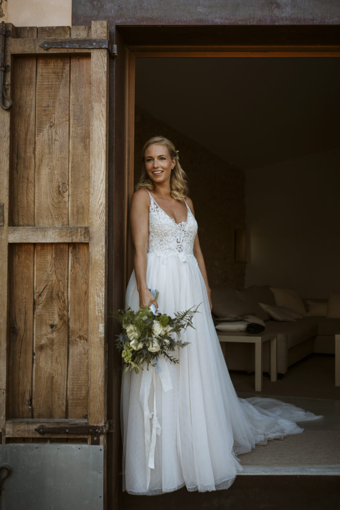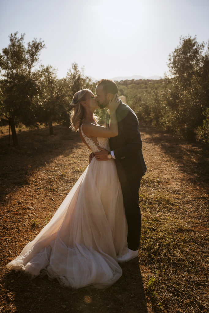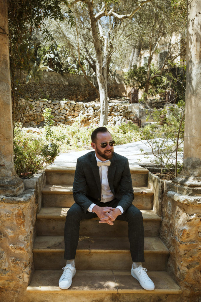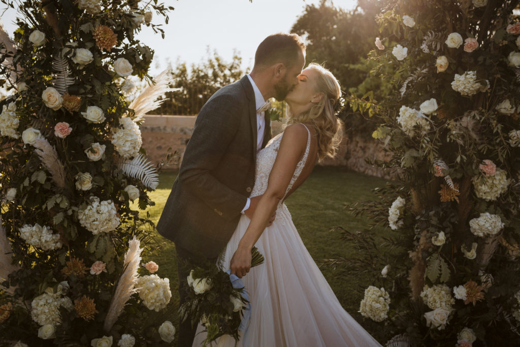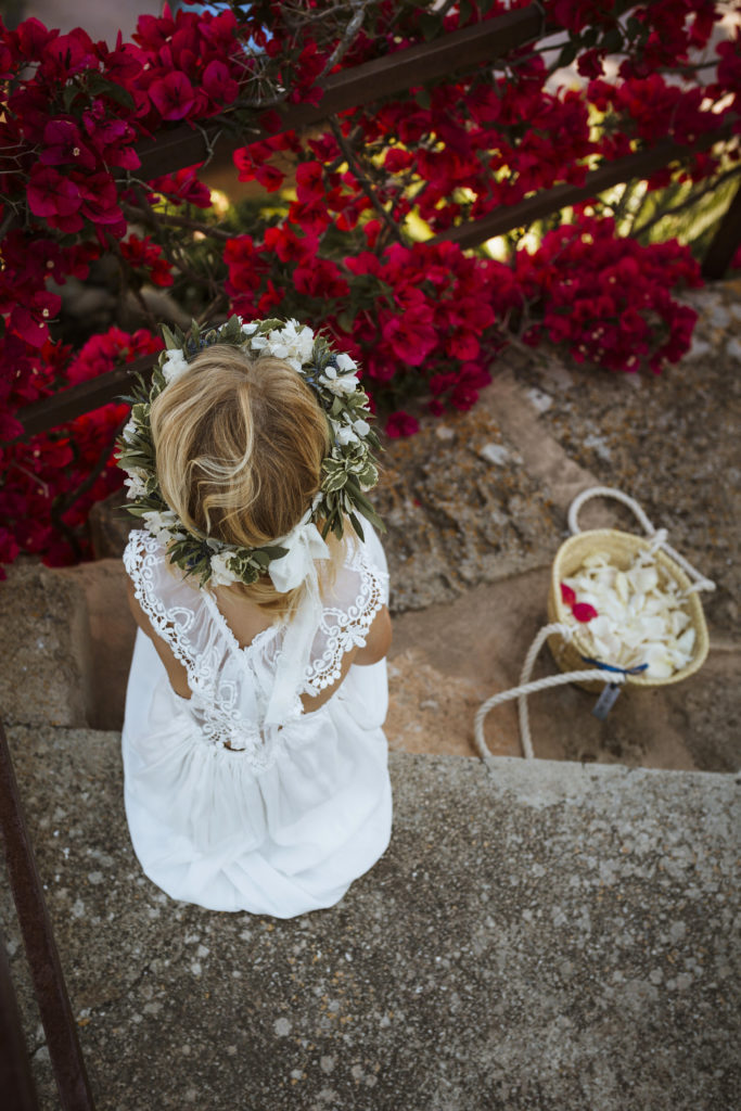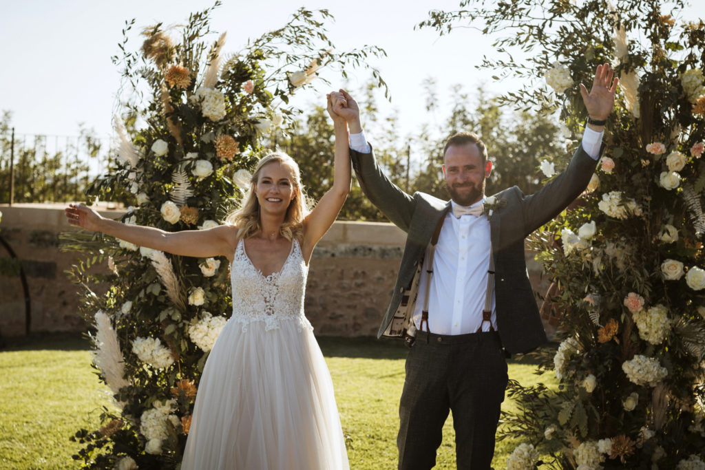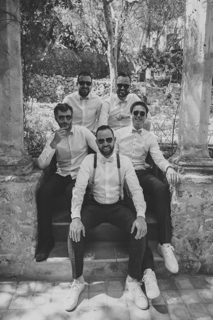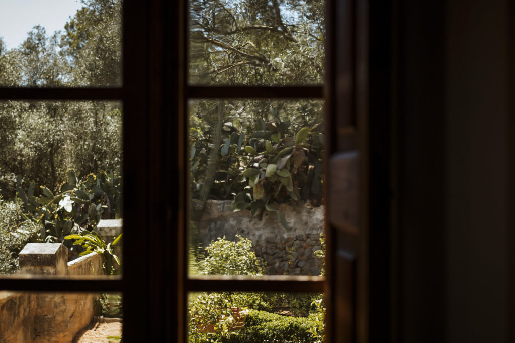 The wedding and the dinner were in finca Son Mir where Judith from Mille Papillons organized an outdoor wedding from the ceremony in the gardens to the cocktail reception in the courtyard of the venue. For the dinner they discovered other beautiful spaces of this beautiful location in front of the facade.