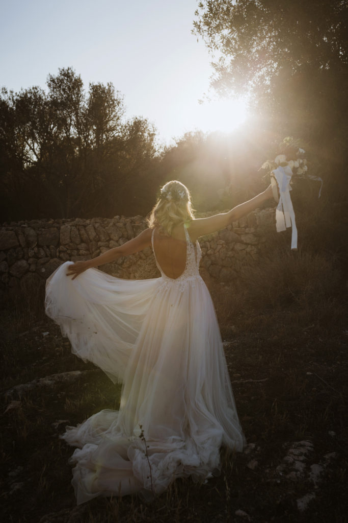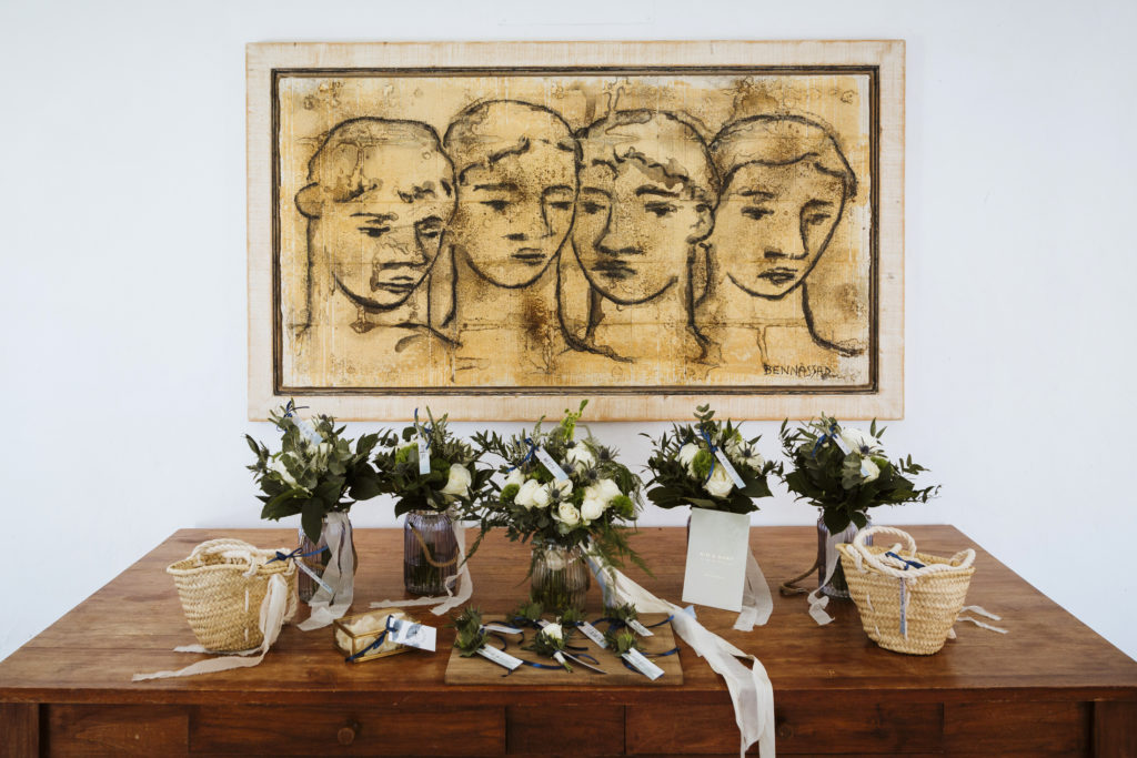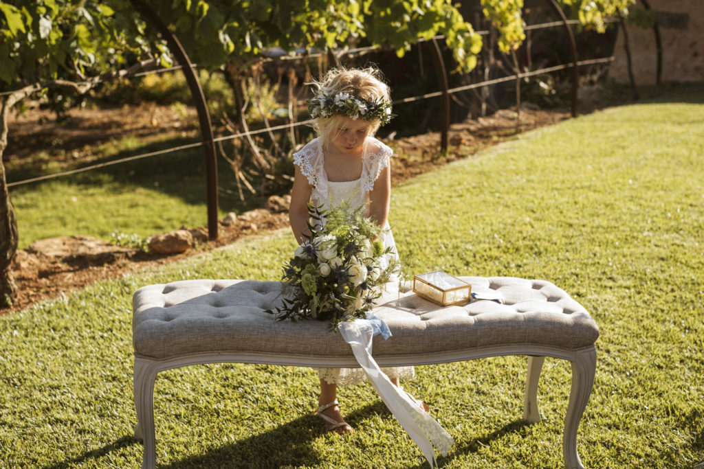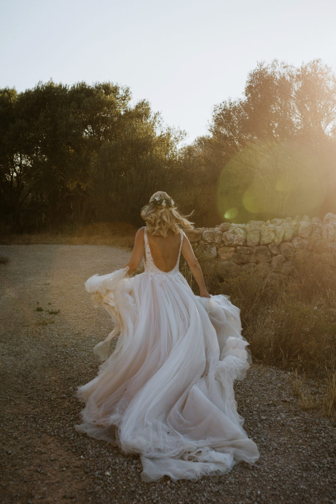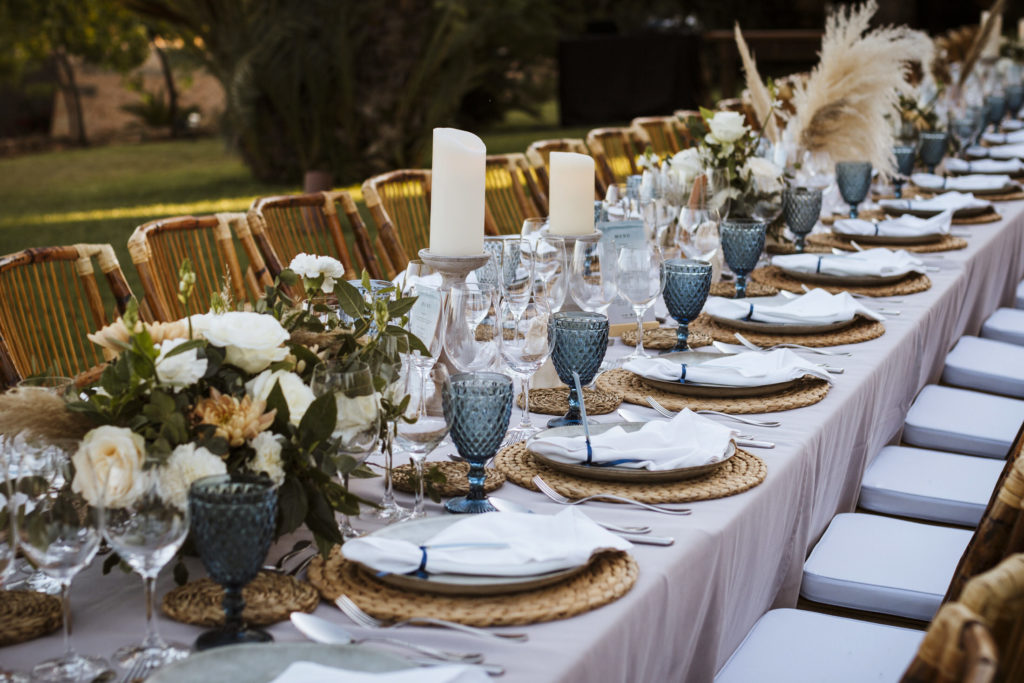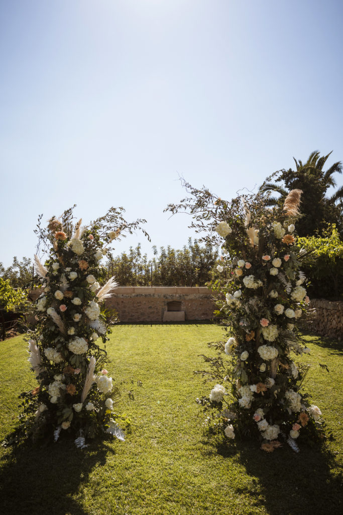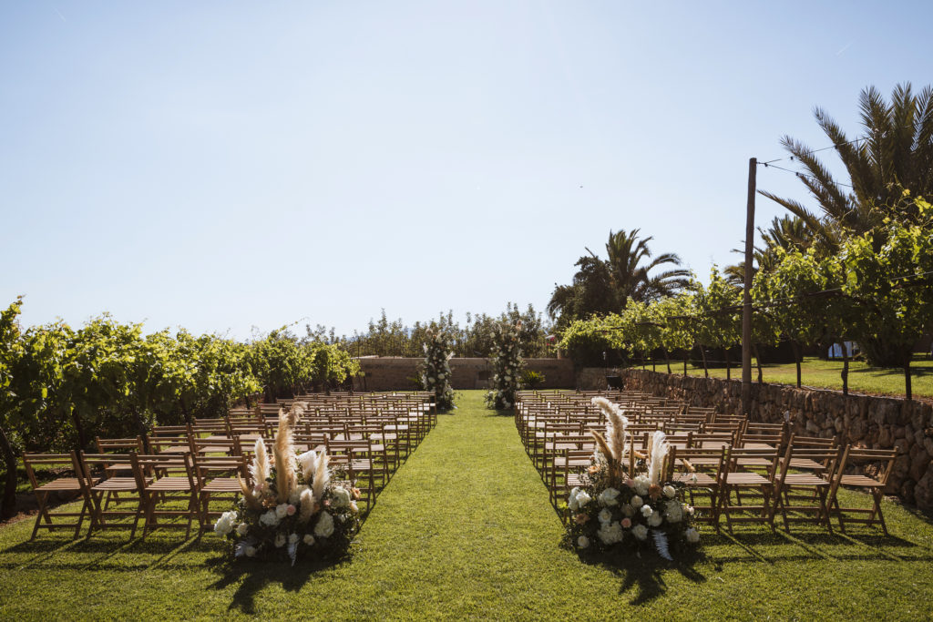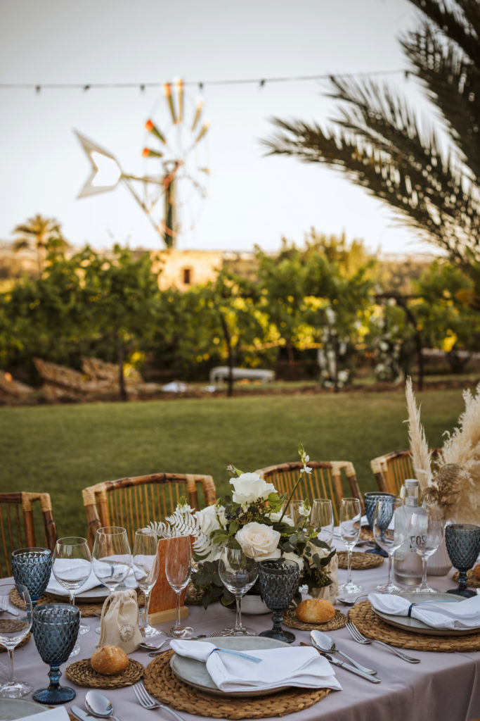 La boda y el convite se realizó en la finca de Son Mir donde Judith de Mille Papillons organizó una boda completamente al aire libre desde la ceremonia que tuvo lugar en el patio de la finca, hasta el aperitivo y la cena donde disfrutaron de diferentes rincones de esta maravillosa localización.